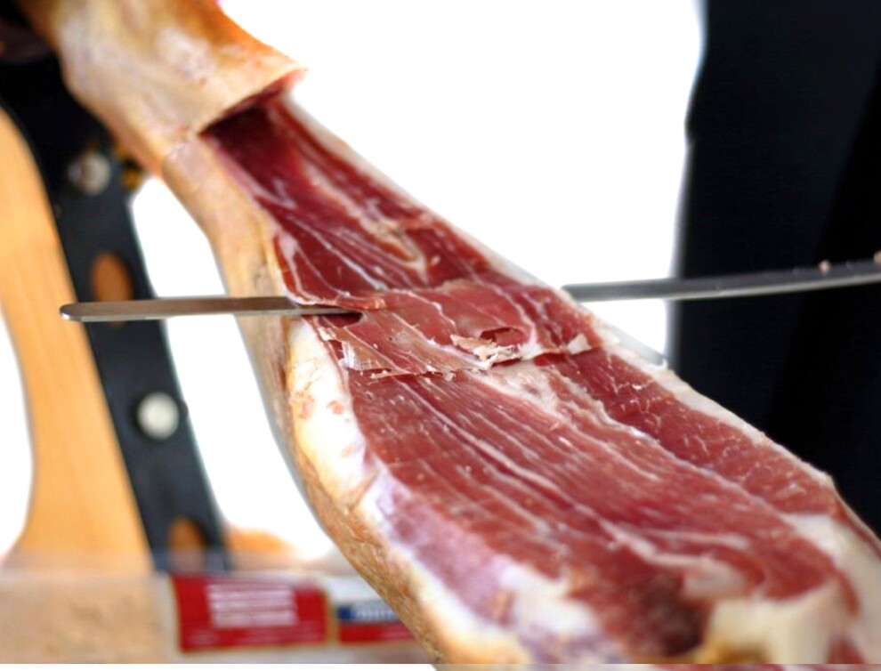 Описание: Фабрика по производству хамона Sierra Alpujarra расположена в привилегированной горной местности на юго-востоке Испании. Здесь на протяжении более 100 лет производят высококачественные хамоны Серрано и колбасные изделия. Данная марка хамона Серрано "Reserva Granada" произведена из всемирно известной породы свиней Duroc. Эти хамоны выдерживаются традиционным способом на медленной и естественной основе на протяжении не менее 12 месяцев. Благодаря этому хамон приобретает характерный ярко-красный цвет и нежный, особо интенсивный аромат и вкус. Этот уникальный хамон Серрано содержит пониженное количество соли и правильные пропорции жира. Представлен в виде: цельной ноги хамона на кости с "V" образным вырезом. Упакован в индивидуальный чехол чёрного цвета.