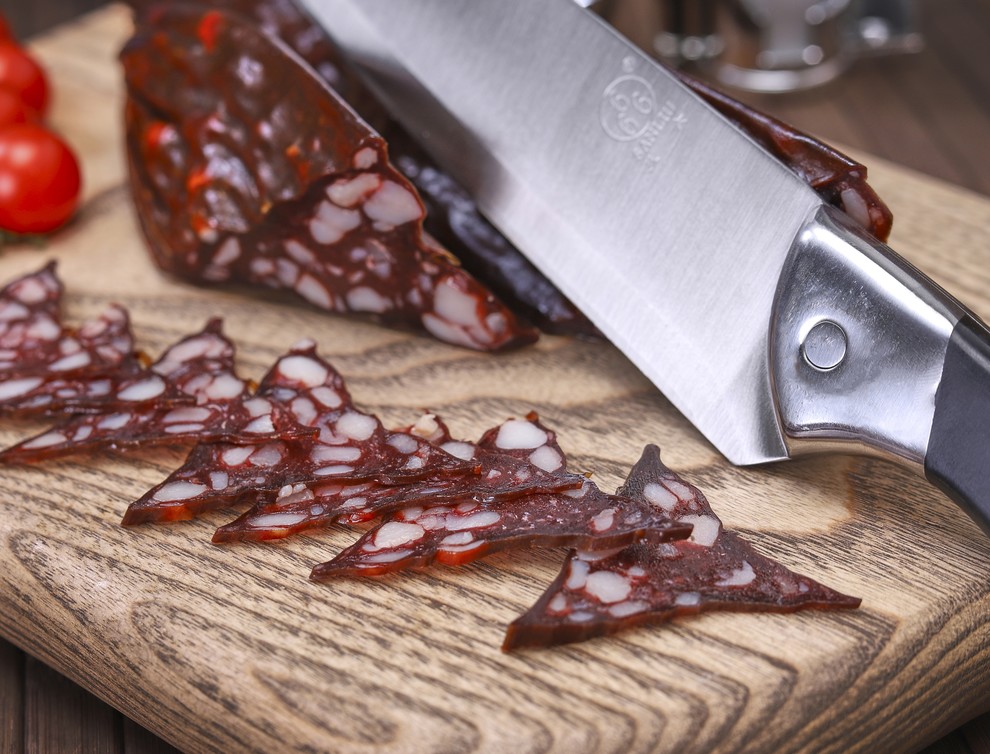 Описание: Колбаса из оленины обладает нежной текстурой, с добавлением пряных специй. Колбаса изготовлена из дикого оленя и содержит вкрапления шпика, однако её жирность довольно низкая, благодаря низкой калорийности оленьего мяса.