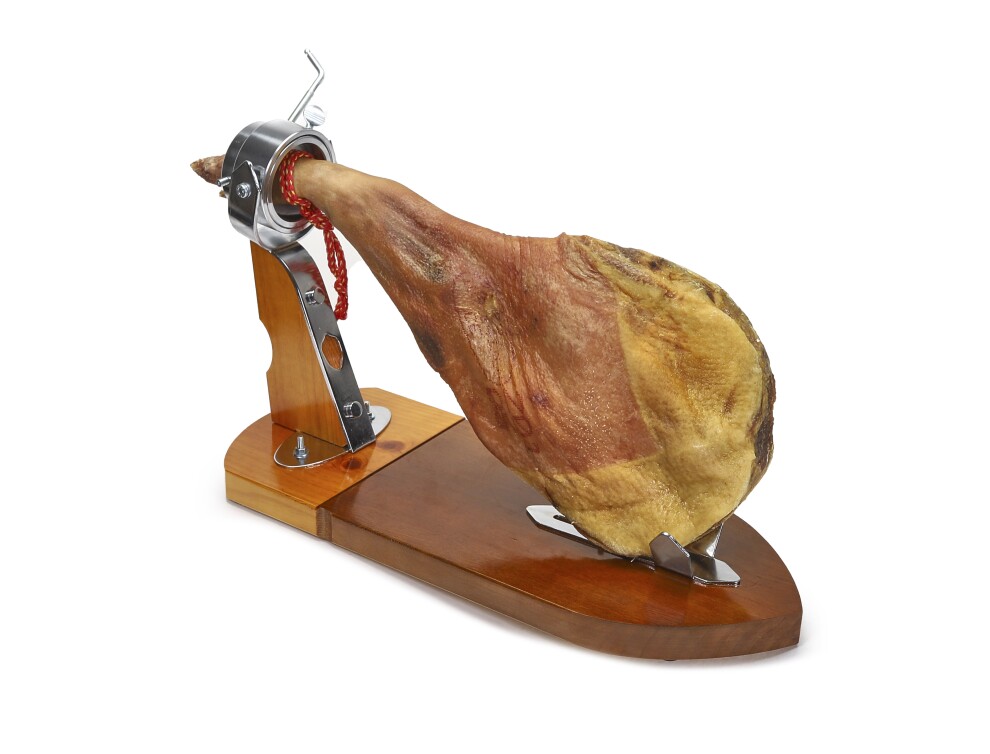 Описание: Продукт для любителей вяленного мяса, сделан из передней ноги белой свиньи. На ферме происходит тщательный процесс откорма свиньи фуражом и растениями. Нужно отметить, что палета всегда жирнее хамона и содержит больше отходов. Хороший бюджетный продукт по соотношению цена/качество. Нога упакована в хлопковый мешок.